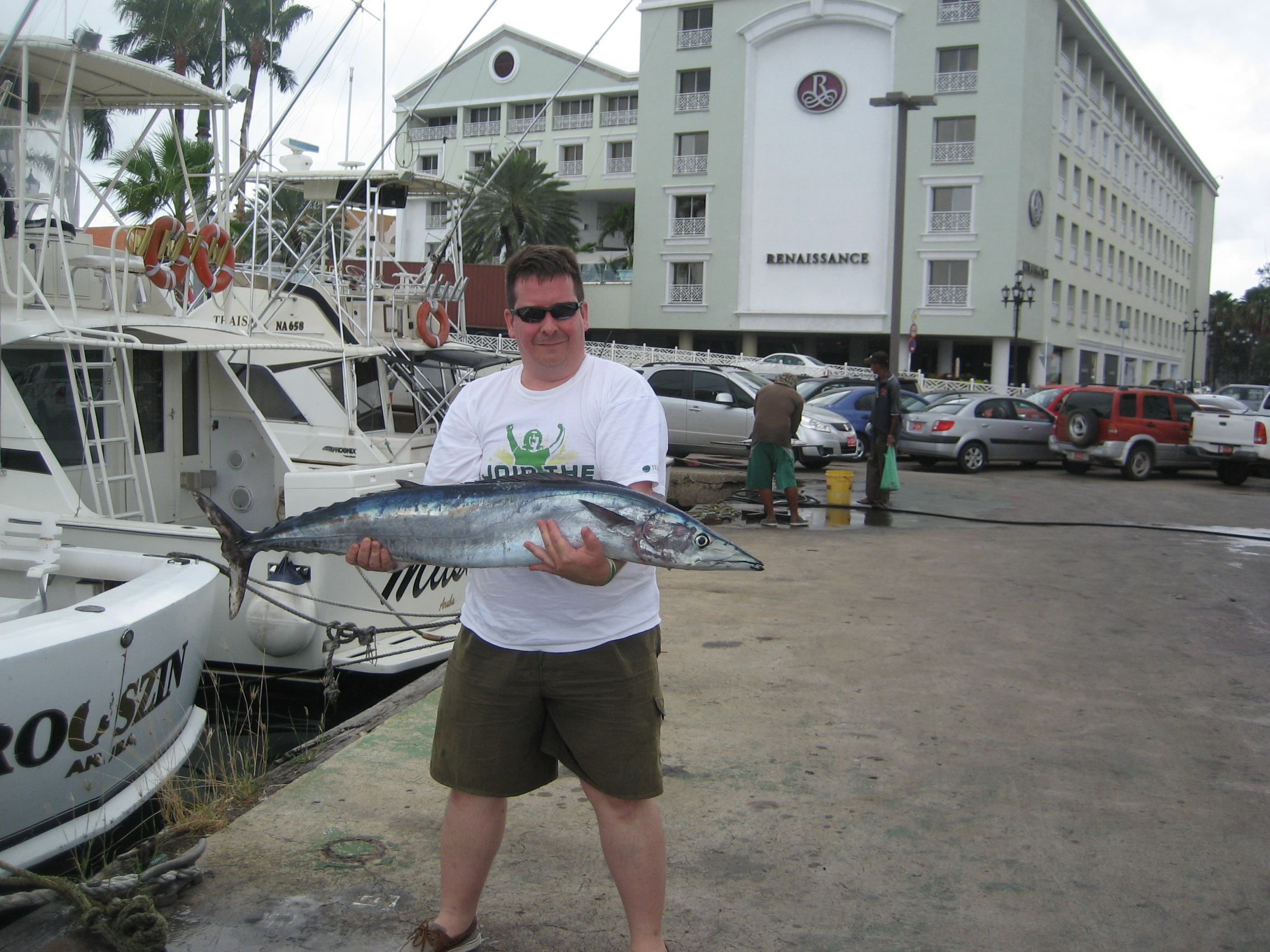 Me holding a Wahoo I caught during a fishing excursion in Aruba.