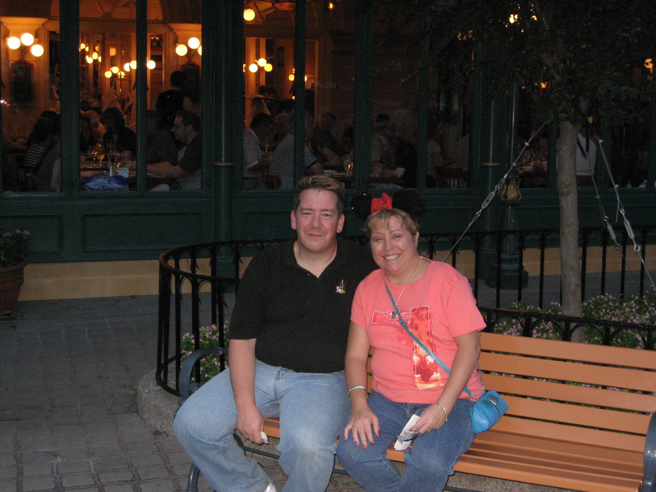Relaxing outside of Chefs de France in Epcot at WDW, Florida.